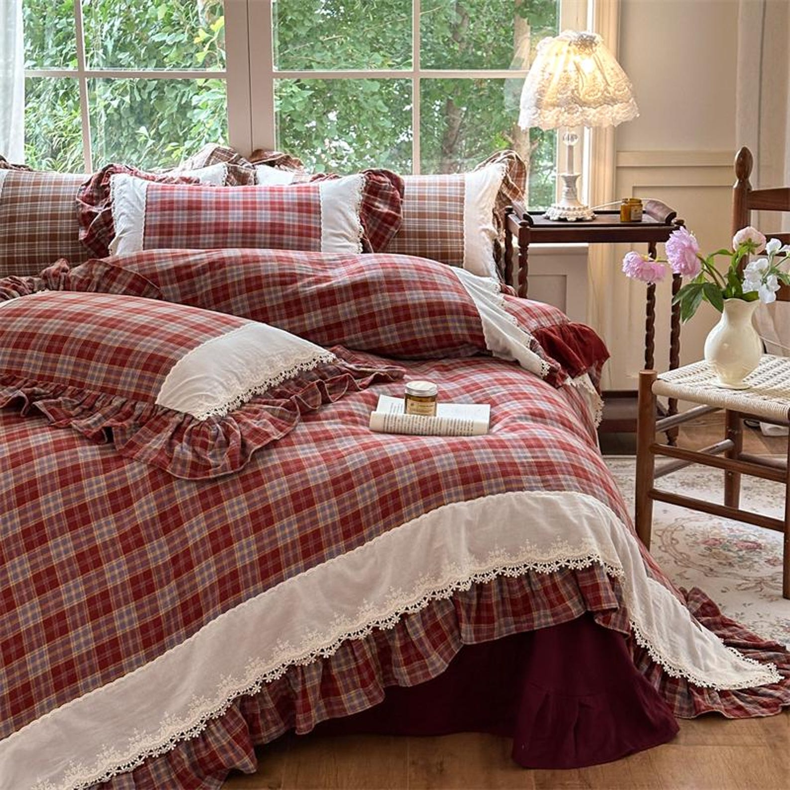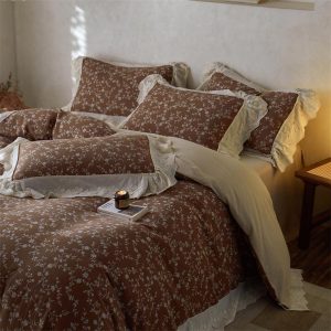 Rustic Brown Floral Lace Four-Piece Bedding Set