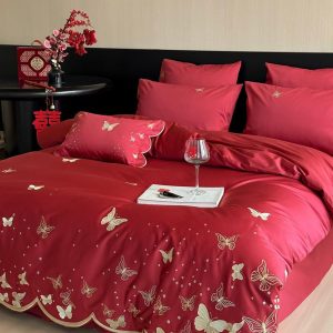 Red Butterfly Embroidered Four-Piece Bedding Set