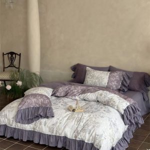 Elegant Purple Floral Ruffle Four-Piece Bedding Set